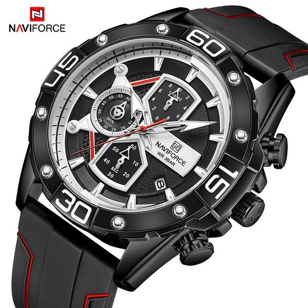 wristwatches 2021naviforc men watch sport quartz casual clock silicone strap waterproof calander date display relogio masculino, Slivery;brown