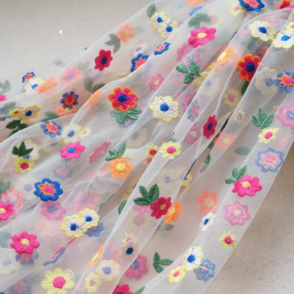 91*135 см вышитый цветной тюль кружевная ткань сетка своими руками свадебное платье цветочная вышитая тюль ткань белый
