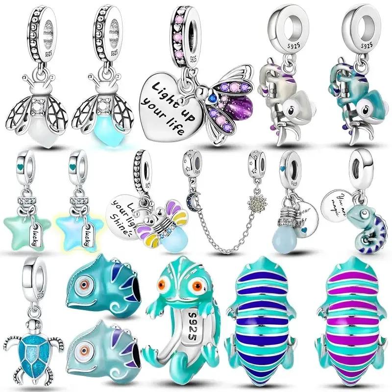 925 Silver Charm Chameleon Glowworm Light Bulb Firefly Star Moon Pendant Fit Original Charms Bracelet DIY Jewelry