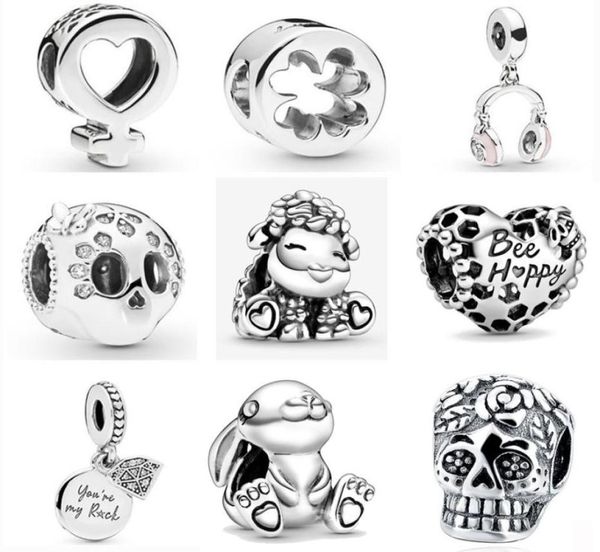925 silver fit charm 925 bracelet rabbit be happly sheep skull clover diy charms set pendant diy fine beads jewelry8665727, Bronze;silver