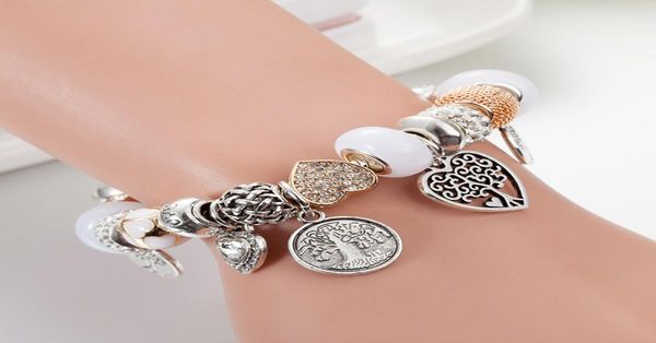 925 silver plated tree of life pendant charms bracelet set original box for chain diy beads ds charm bracelets for women girls7826083, Golden;silver