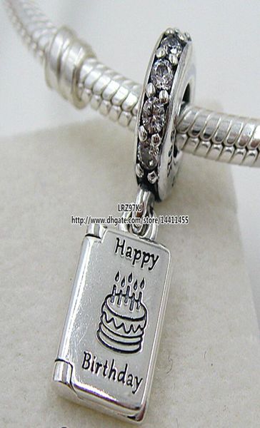 925 sterling silver birthday wishes dangle charm bead with clear cz fits european jewelry bracelets & necklace pendant3336673, Black