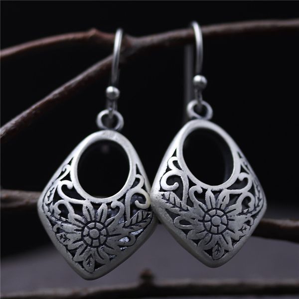 925 sterling silver double sides hollow out sunflower women earring s925 silver antique classic ear hook eardrop