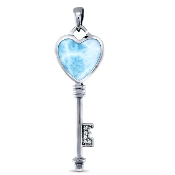 925 sterling silver natural larimar heart key pendant necklace for women party gift