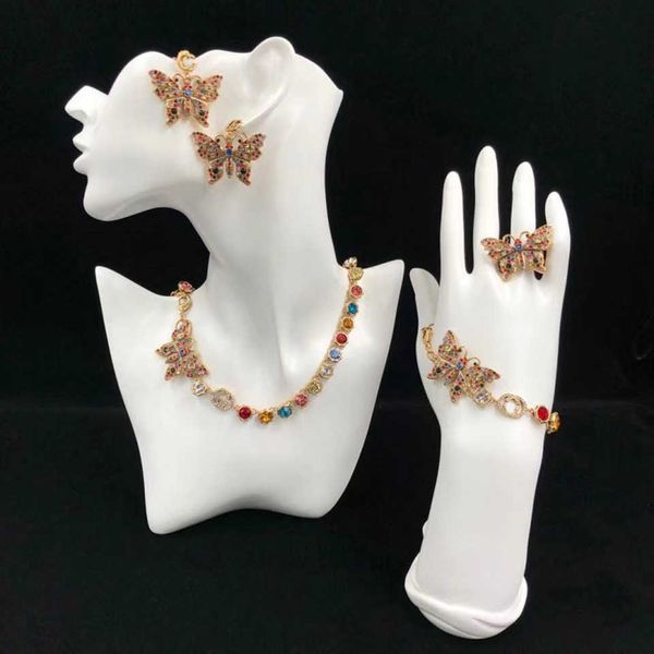 95% off 2023 new luxury fashion jewelry for double butterfly vegetable rhinestone necklace open bracelet brass material versatile ring, Silver