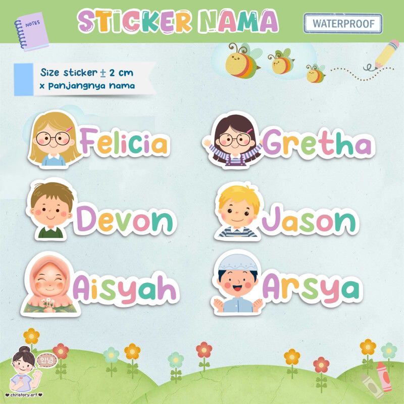 ukuran sticker nama : 2cm x panjangnya nama.