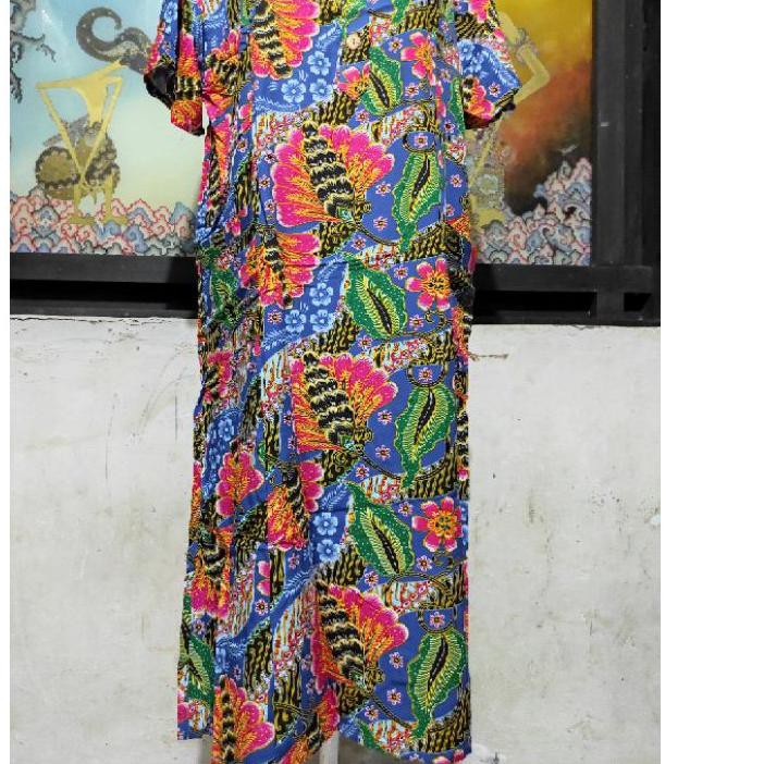 Bahan santung rayon dengan kualitas batik terkenal dari kencana ungu. Label biru. Dengan 2 Kantong sisi kanan dan kiri dan 3 kancing aktif.