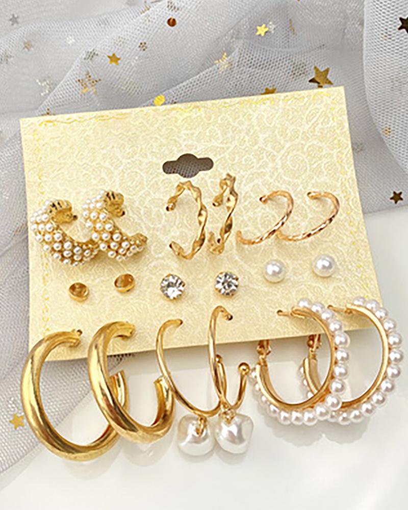 9Pairs Rhinestone Beaded Hoop Earrings Set, Style1