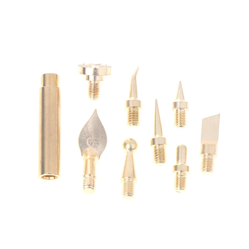 9Pcs/Set Heat Insert Nut Iron Tip Hot Melt Heat Set Insert Tool Soldering Iron Tip 3D Printing Brass Thread Embed Welding Kit