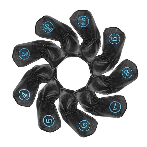 9pcs/set (4~9 pw aw sw) golf iron clubs head covers long neck 2-side no.embroidery elastic closure black pu leather complete set of