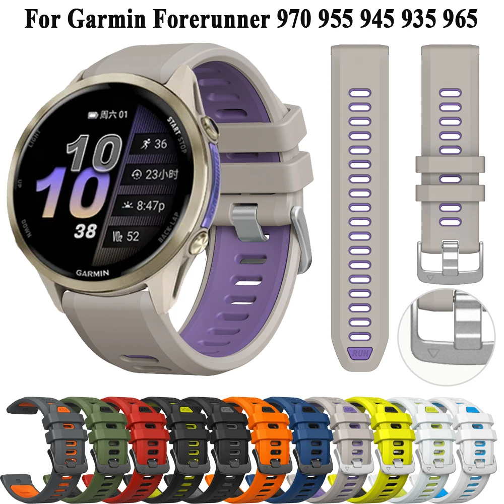 Двухцветный силиконовый ремешок 22 мм для Garmin Forerunner 970 965 955 Solar 945 935 745 Descent G2 Instinct 2 Ремешок для часов Браслет