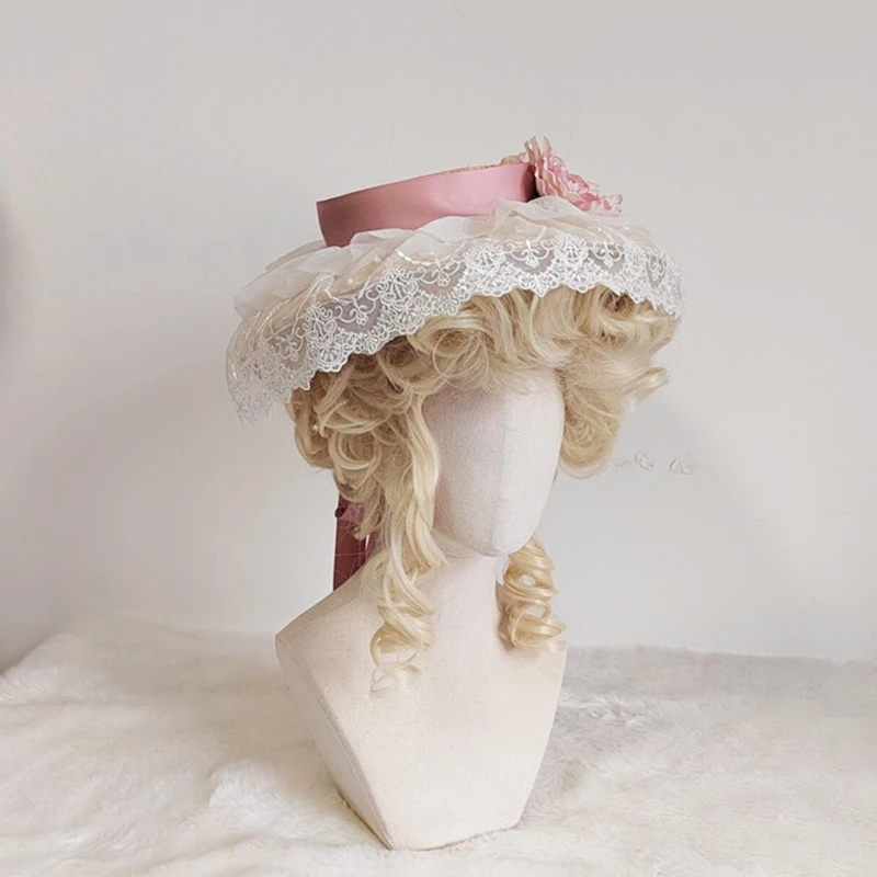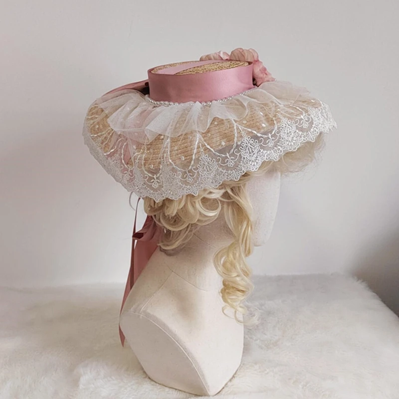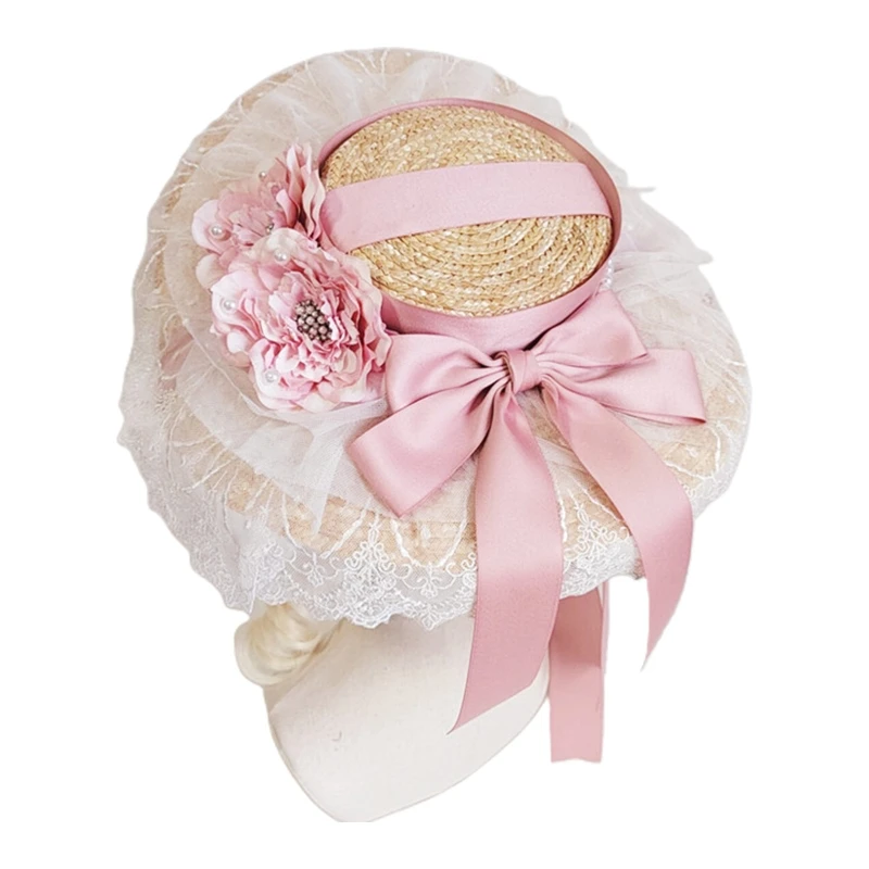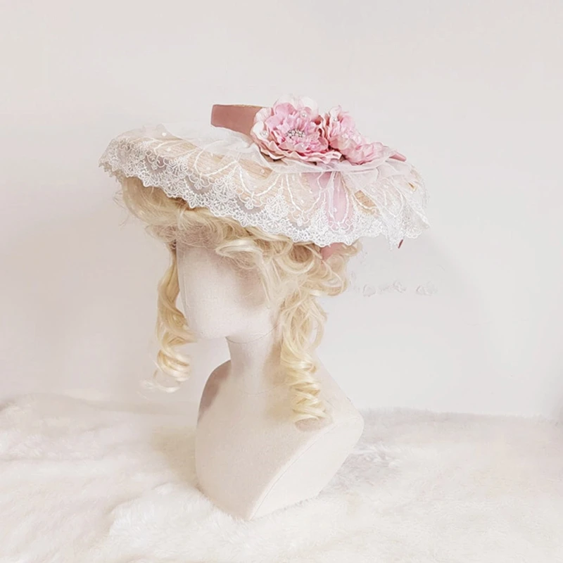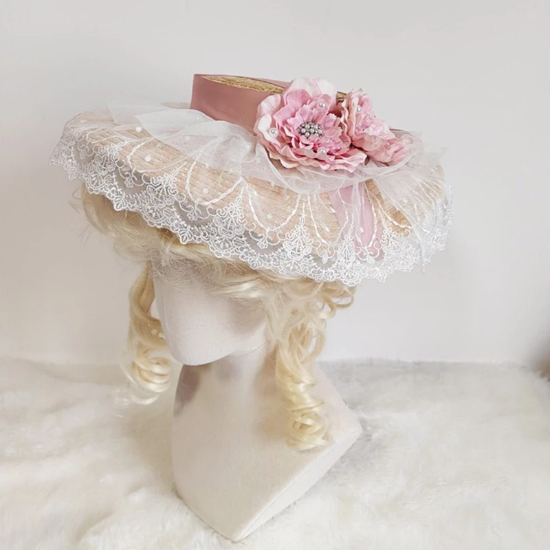 A2ES летняя женская шляпа Лолиты, шляпа для отдыха, солнцезащитный крем, солнцезащитный козырек, плоская шляпа с цветком