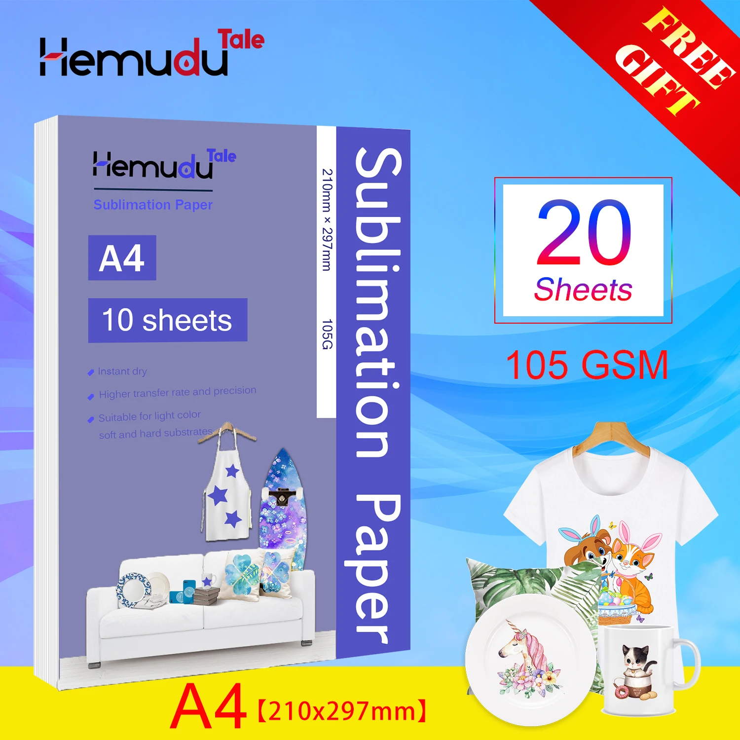 A4 105 г, 10 листов, сублимационная теплопередающая бумага для полиэстера, футболки, подушек, тканей, дизайнерский рисунок