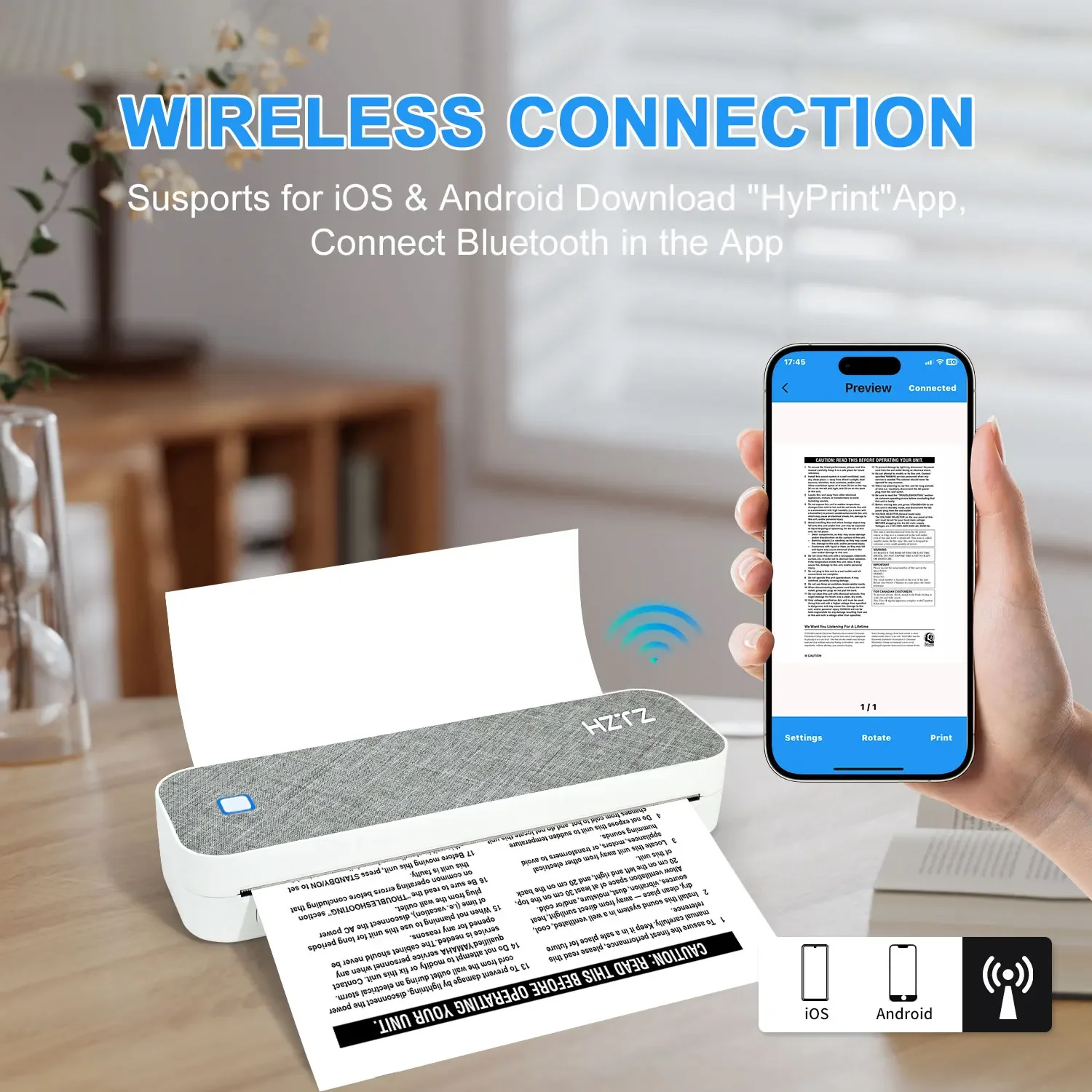 A4 Bluetooth Business Travel Print Anywhere Inkless 203DPI Portable Rechargeable Thermal Printer