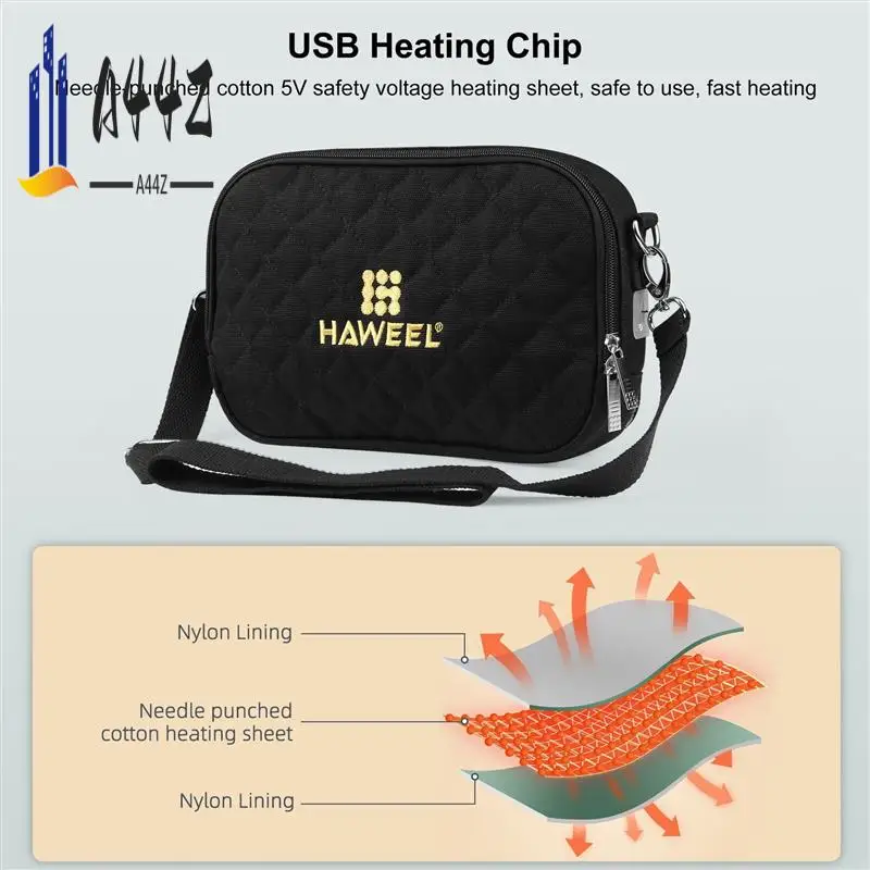 A44Z-Haweel Сумка-грелка через плечо для рук, цифровая сумка для хранения, термосумка с подогревом, электрическая зимняя грелка для рук - черная сумка Du