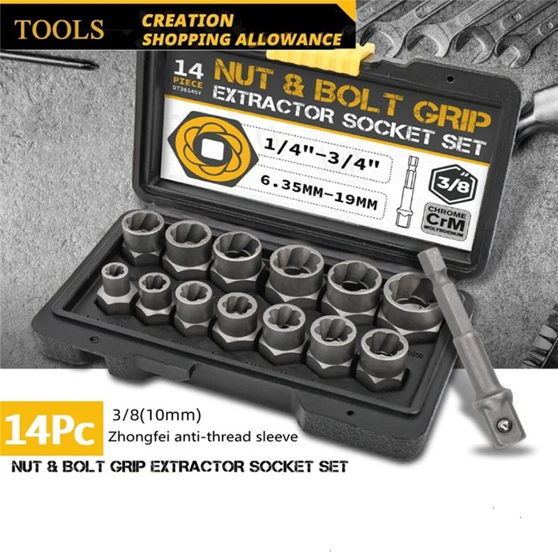 A45I 14-Piece Pull-Out Sleeve Set Nut Extractor Damaged Incomplete Screw Nut Extractor