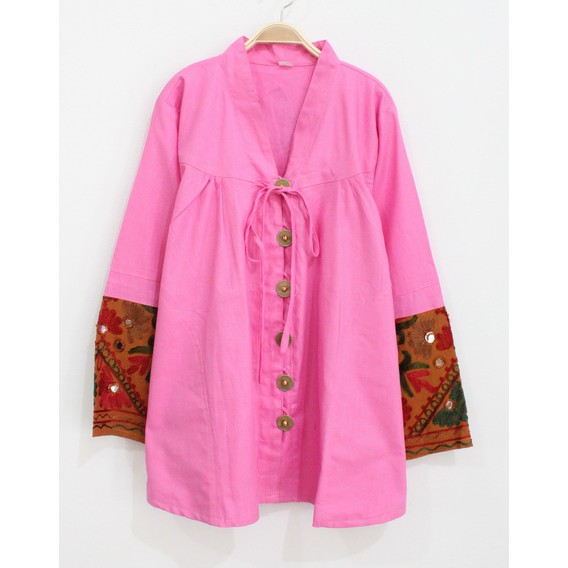 Detail cantik pada kancing, ujung lengan dan bahu.