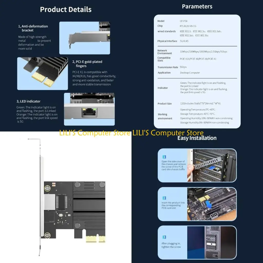 A52B PCIExpress Gigabit Networking Card Offering 5000Mbps Transfer Speed For Home Theater PC And Data Center Equipment