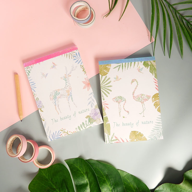 Koleksi buku notes dengan kertas full color bertema rusa dan burung flamingo. Catat apa saja di atasnya layaknya buku biasa atau sobek halamannya untuk diselipkan pada bukumu sesuai kebutuhan. Tiap buku juga dilengkapi satu lembar stiker kertas agar kamu bisa menambah dekorasimu sendiri.