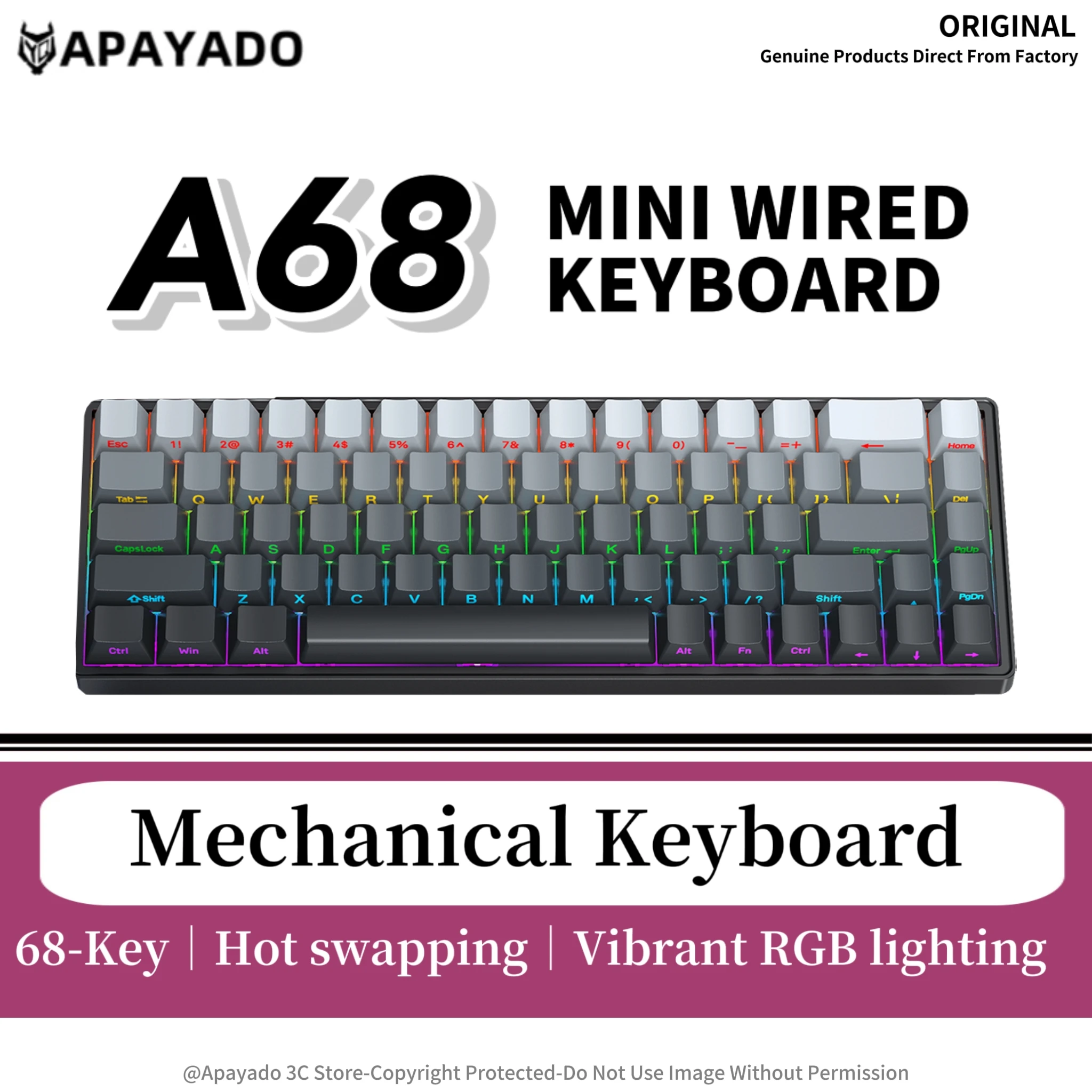 A68 Mini Mechanical Keyboard,APAYADO RGB Backlight,Full N-Key Rollover,ABS Keycaps,Separate Key Wires,Blue/Red Switch Design