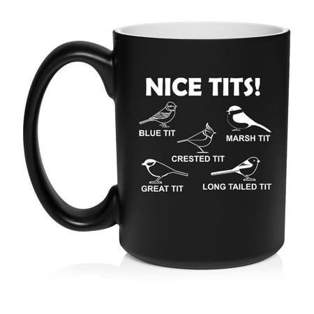 Nice Tits Funny Bird Watcher Lover Tit Birds Ceramic Coffee Mug Tea Cup Gift (15oz Matte Black)