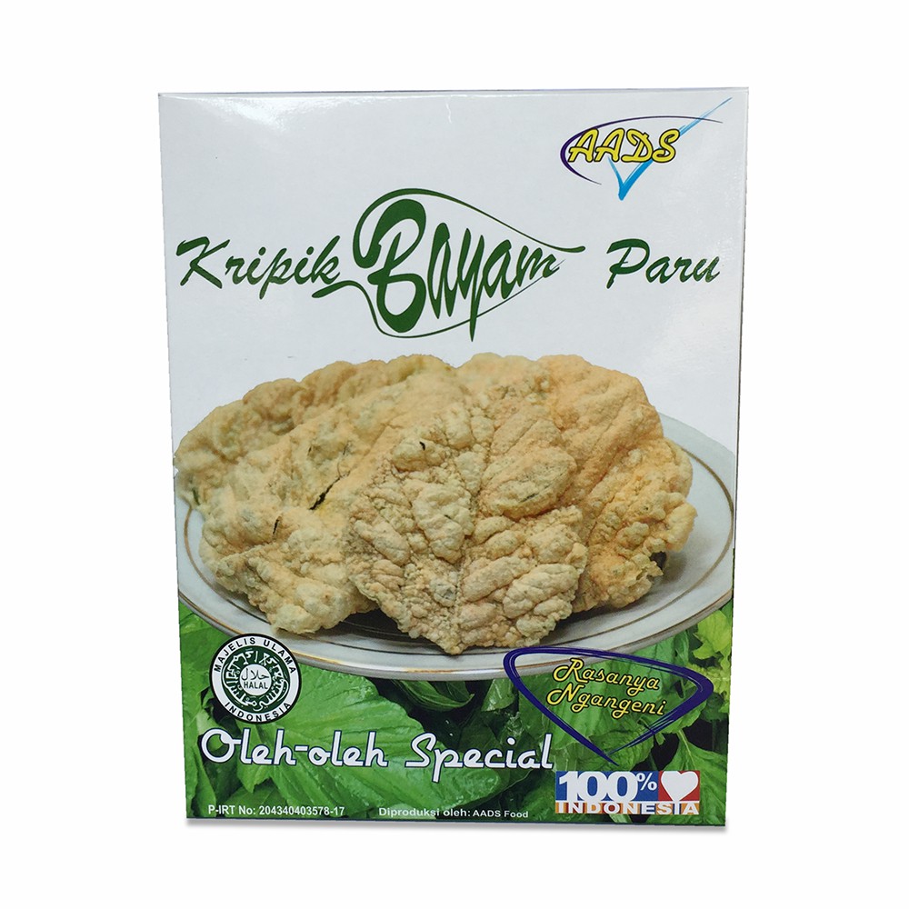 Kripik Bayam AADS rasa Paru dibuat dengan bahan pilihan sehingga menghasilkan tekstur yang unik. urat daun yang nampak berwarna putih menghasilkan rasa yang gurih walau tanpa menggunakan msg dan bahan pengawet.