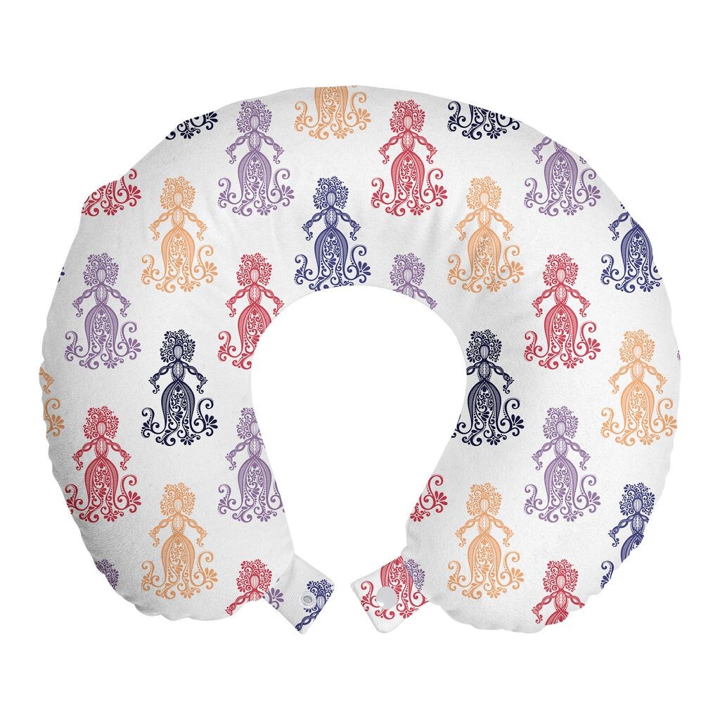 ABAKUHAUS Винтажная дорожная подушка для шеи, женская форма, цветочный мотив, пенопластовые дорожные принадлежности для самолета и автомобиля, 30x30 см, разноцветные