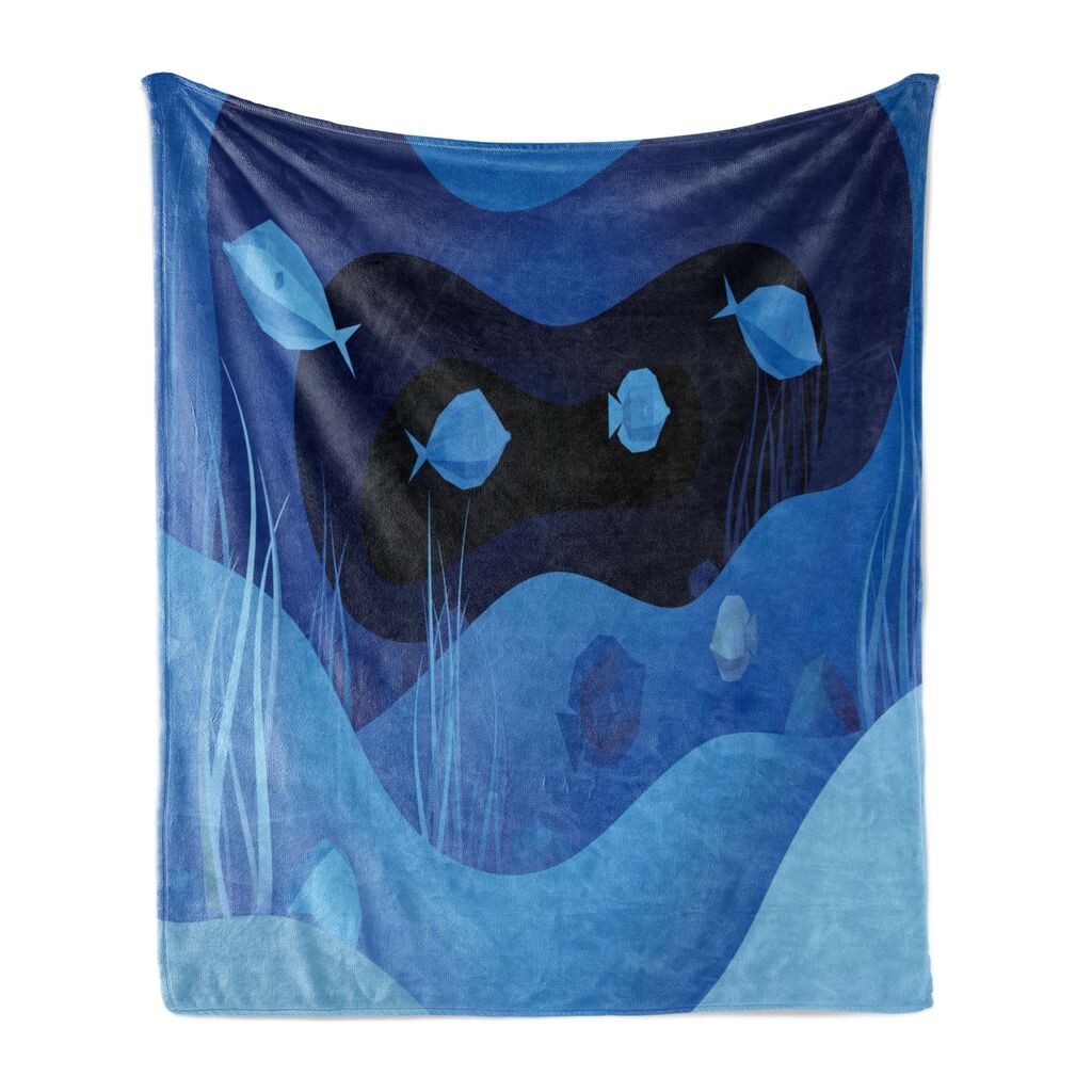 ABAKUHAUS Deep Sea Мягкое фланелевое флисовое одеяло, полирыба и морские растения, уютный плюш для использования в помещении и на открытом воздухе, 125 x 175 см, лазурно-синий, ночной синий