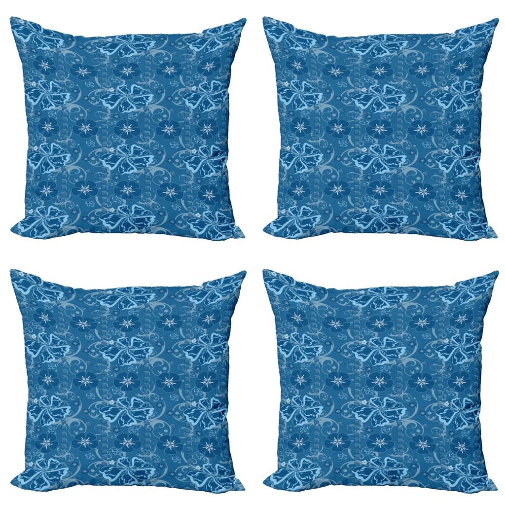ABAKUHAUS Luau Комплект чехлов на подушки (4 предмета), цветочный узор, современная двусторонняя цифровая печать, 60 см x 60 см, темно-синий-бирюзовыйовый