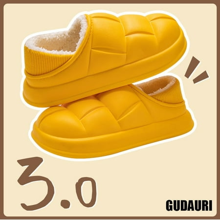 GUDAURI Women s Cotton Slippers Flats Shoes Closed Back Slipper Household ,EVA Waterproof Non Slip Thick Bottom Fleece Warm Cotton Slippers-Yellow