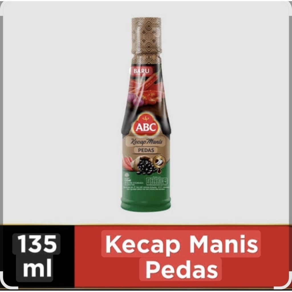 ABC Kecap Manis Pedas adalah varian kecap manis dari merek ABC yang memiliki sensasi pedas. Produk ini tersedia dalam kemasan botol 135 ml, seperti yang terlihat pada gambar.