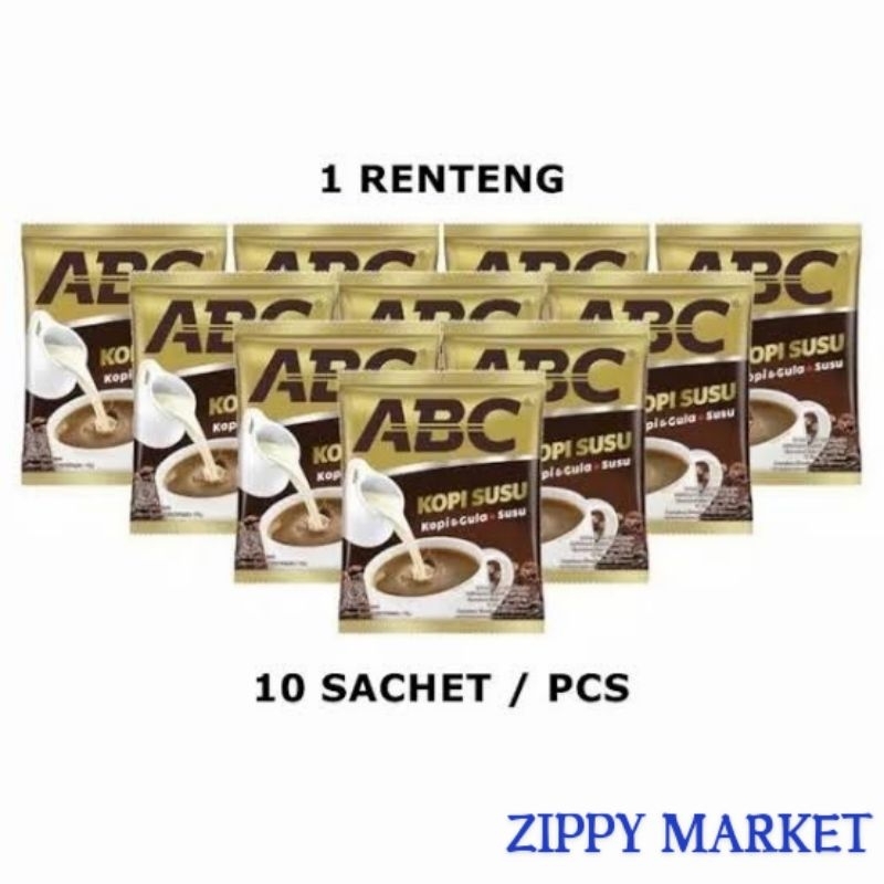 ABC Kopi Susu. Adalah minuman serbuk instan kopi dan gula + susu, yg terbuat dari biji kopi pilhan dan susu yg diproduksi menggunakan mesin2 mutakhir yg menghasilkan kopi siap seduh yg sangat cocok utk penikmat kopi Indonesia. Dikemas dalam kemasan renceng isi 10 sachet dgn netto @31g yg praktis dgn harga ekonomis.