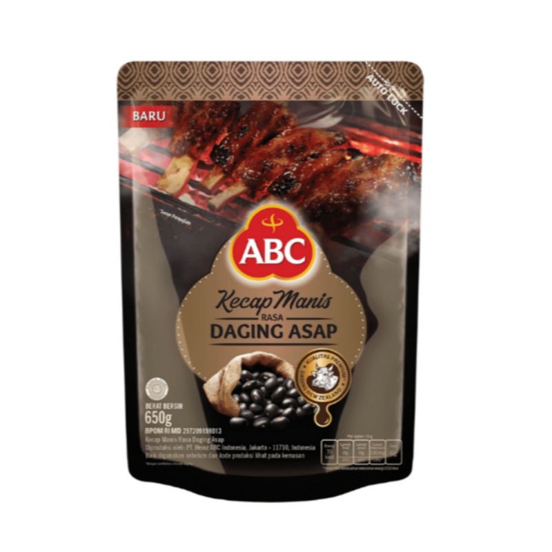 ABC Kecap Manis Daging Asap 650 ml adalah kecap manis dengan varian rada daging asap. Dibuat menggunakan kacang kedelai hitam perasan pertama, sehingga memiliki rasa yang pekat dan aroma yang kuat. Proses pengolahan dengan menggunakan teknologi modern membuat kecap manis yang dihasilkan memiliki kualitas terbaik dengan warna yang hitam pekat dan tekstur yang kental. Mampu menambahkan dan membangkitkan citra rasa pada setiap masakan yang dibuat. Dengan inovasi terbaru menghasilkan kecap manis dengan tambahan varian rasa daging asap yang cocok digunakan untuk membuat makanan tumis, nasi goreng, dan barbeque. Tersedia dalam kemasan pouch refill 650 ml.