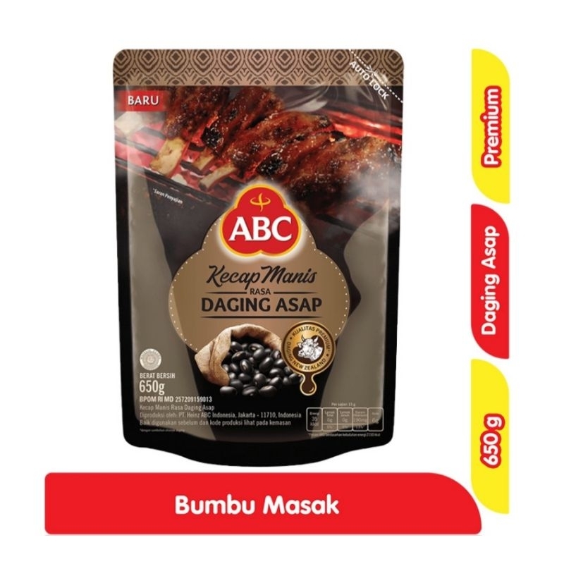 ABC Kecap Manis Daging Asap 650 ml adalah kecap manis dengan varian rada daging asap. Dibuat menggunakan kacang kedelai hitam perasan pertama, sehingga memiliki rasa yang pekat dan aroma yang kuat. Proses pengolahan dengan menggunakan teknologi modern membuat kecap manis yang dihasilkan memiliki kualitas terbaik dengan warna yang hitam pekat dan tekstur yang kental. Mampu menambahkan dan membangkitkan citra rasa pada setiap masakan yang dibuat. Dengan inovasi terbaru menghasilkan kecap manis dengan tambahan varian rasa daging asap yang cocok digunakan untuk membuat makanan tumis, nasi goreng, dan barbeque. Tersedia dalam kemasan pouch refill 650 ml.