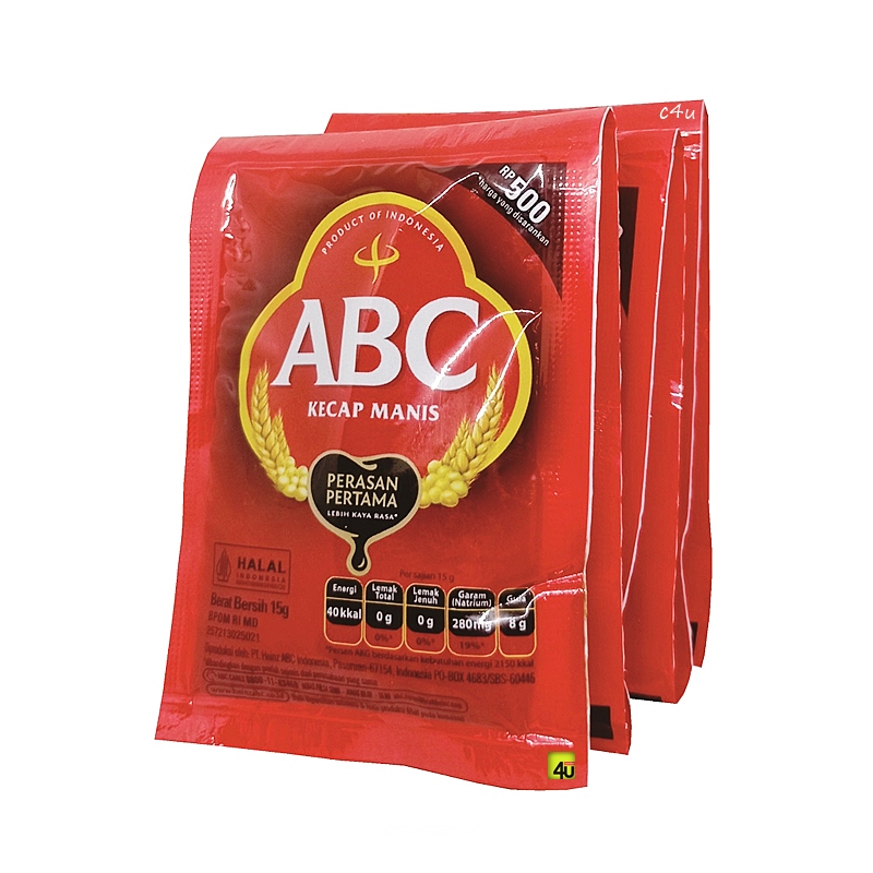 Diproduksi dari perasan pertama kedelai pilihan, dan melalui proses produksi yg modern dgn standar kualitas utama. Hingga didapat hitamnya kecap yg sangat baik, kental sempurna, dan rasa yg lebih kaya. Tersedia dgn berbagai kemasan, salah satunya adalah kemasan sachet 15gr. Sangat praktis, cocok buat individu2 yg dinamis dan mandiri, dan menghargai kenikmatan rasa yg pasti. Produksi PT. Heinz ABC Indonesia. Beratribut BPOM RI dan Halal MUI. Monggo diorder.