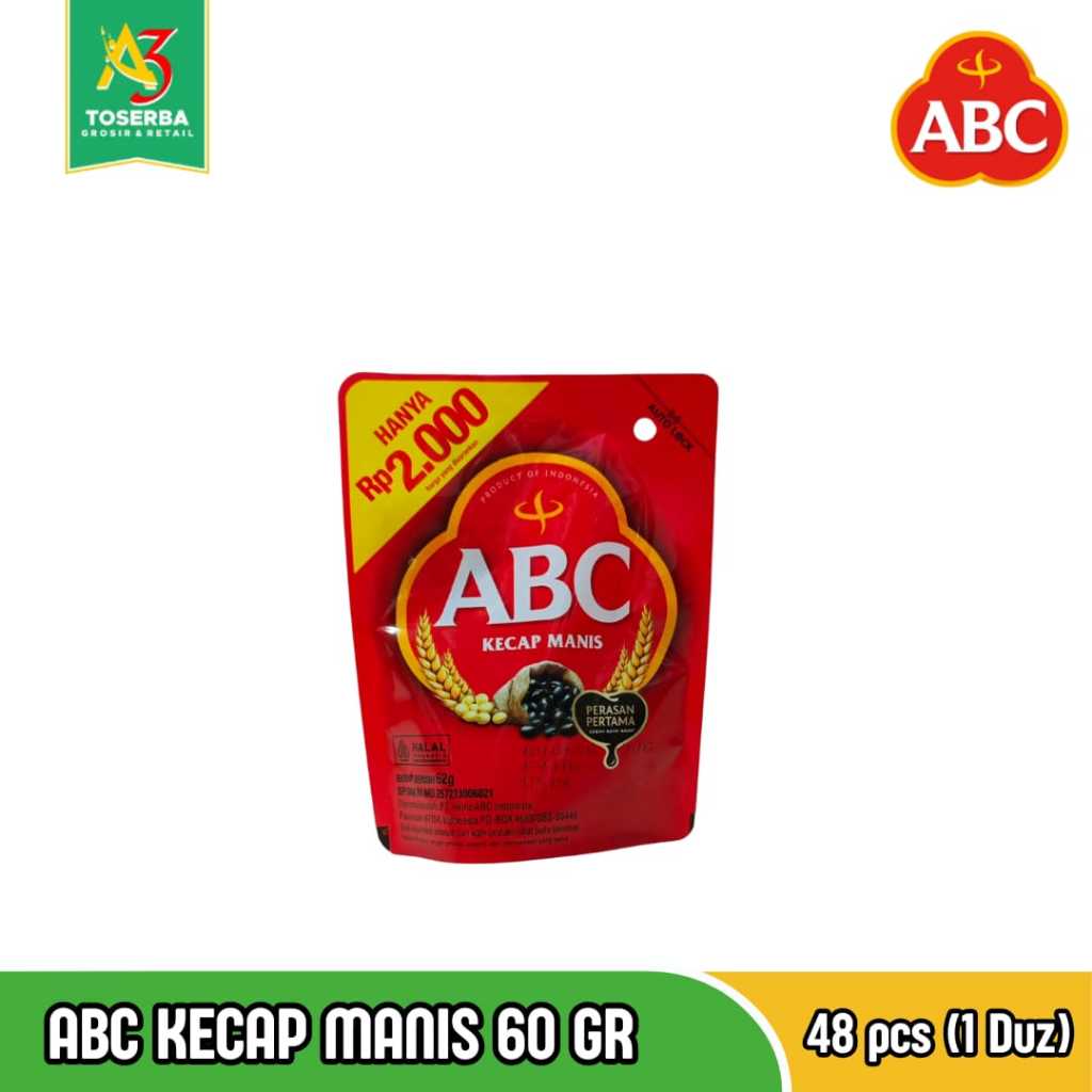 ABC Kecap Manis 60 gr terbuat dari bahan-bahan eksotis pilihan yang hanya diproduksi di pulau Jawa, yaitu gula aren dan kacang kedelai. Kecap manis ABC diproses secara modern dan higienis untuk menghasilkan kecap dengan kekentalan dan kemurnian rasa sehingga memberikan cita rasa istimewa pada setiap masakan. Rasa manis ABC Kecap Manis yang alami diperoleh dari gula aren yang dikeringkan menggunakan panas sinar matahari, menambah aroma dan memberi rasa manis istimewa pada berbagai masakan. Dapat digunakan untuk berbagai sajian masakan, seperti tumisan, goreng, bakar atau panggang serta untuk celupan dan topping. Hadir dalam kemasan pouch praktis dengan teknologi auto lock juga memudahkan saat digunakan dan disimpan.