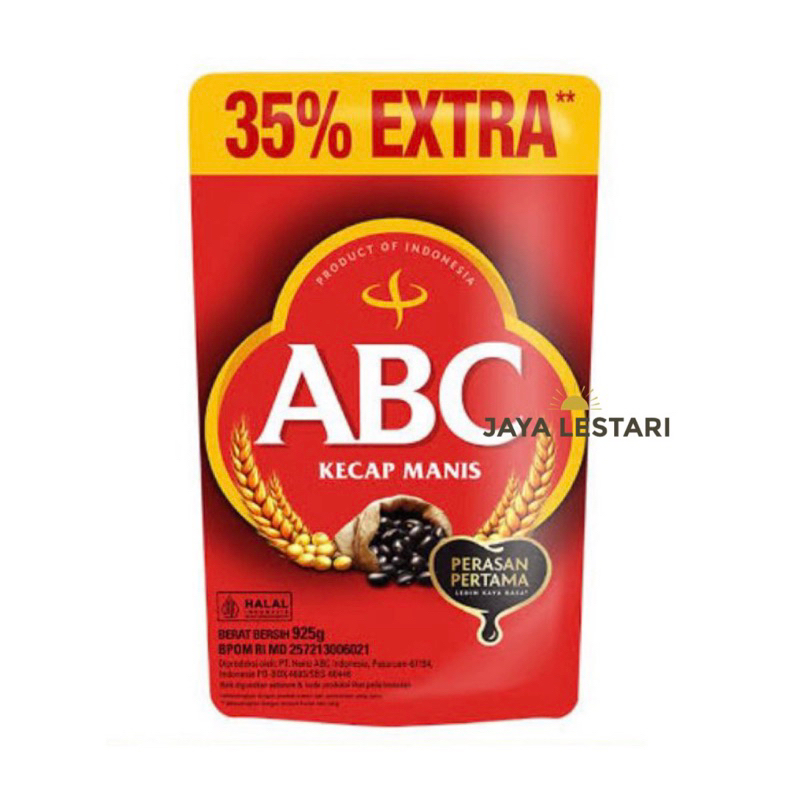 Kecap manis ABC dibuat dengan kedelai, gandum dan gula merah pilihan sehingga menghasilkan kecap manis dengan citarasa mantap, hitam dan kental. KOMPOSISI : Gula, air, garam, kedelai, biji gandum, pengawet natrium benzoat, pemantap nabati.