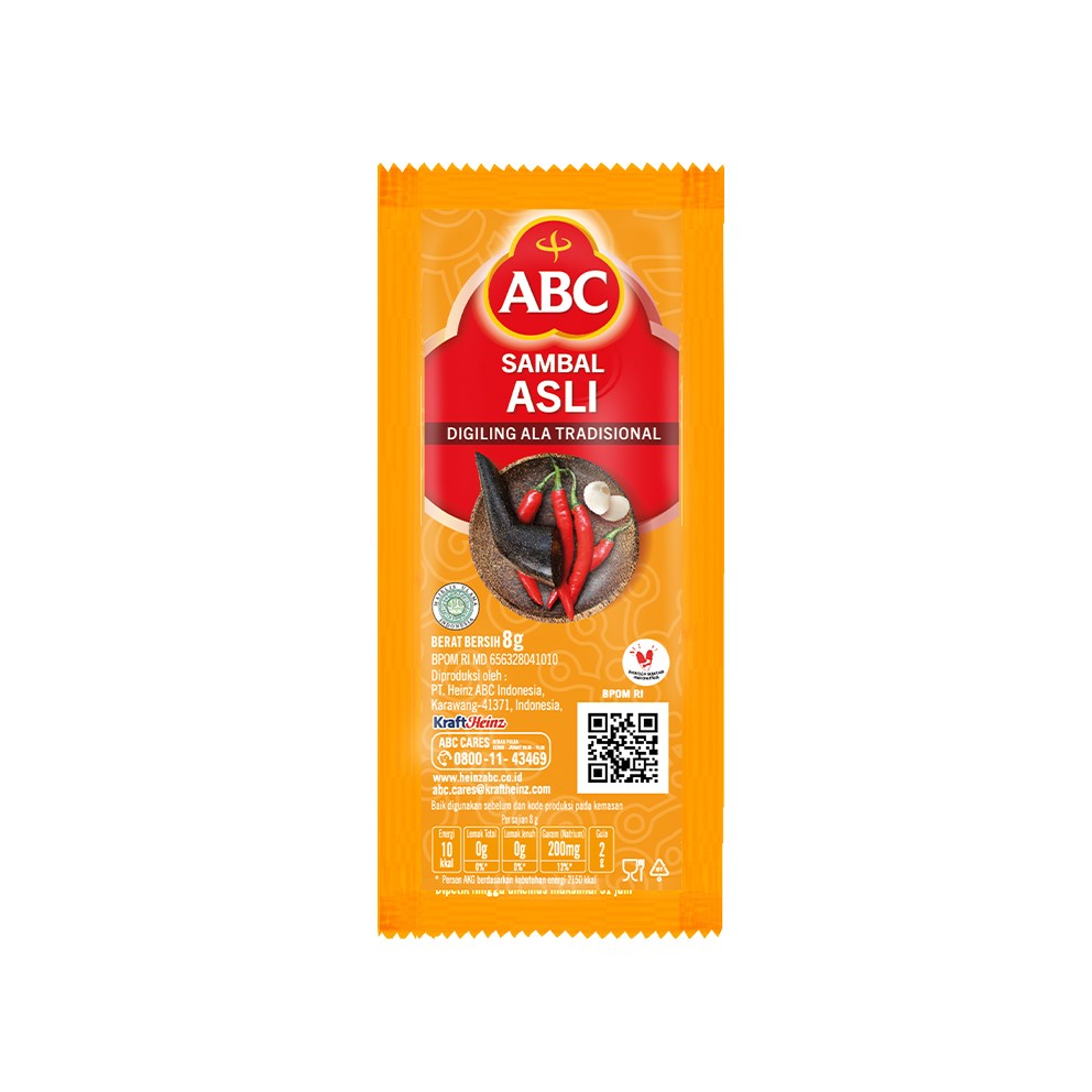 Sambal ABC adalah terbuat dari cabai asli pilihan dan tanpa pewarna tambahan. Digiling secara tradisional untuk hasil lebih natural dan rasa pedas yang maksimal.