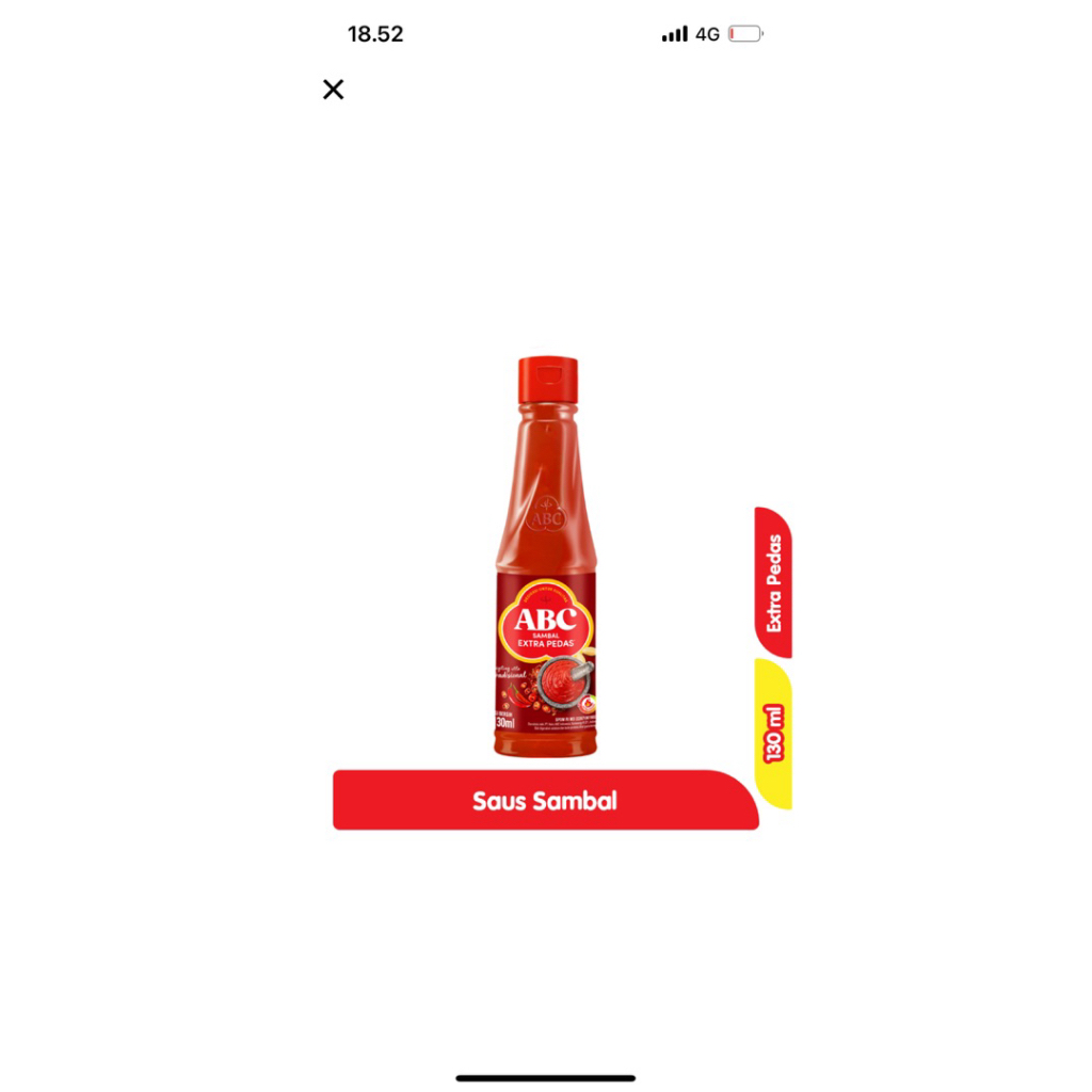 ABC Sambal Asli Botol 130 ml adalah ABC Sambal Asli, Sambal No 1 di Indonesia, adalah pilihan utama bagi pecinta pedas yang menghargai kualitas dan keaslian rasa. Terbuat dari Cabai Hiyung berkualitas yang menjadi kunci rahasia di tiap Sambal ABC favorit keluarga Indonesia dan tanpa tambahan pewarna, sambal ini dihasilkan melalui proses penggilingan tradisional untuk menghadirkan rasa pedas yang maksimal dan alami.