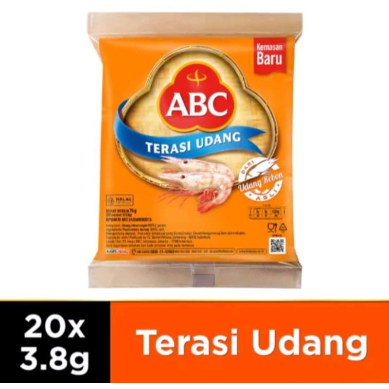Terasi udang ABC terbuat dari olahan udang rebon pilihan dan bercitra rasa khas. Menambah cita rasa gurih pada masakan. Terasi dibuat dari udang rebon segar, sehingga mengandung protein, kalsium, dan yodium. Sehingga dapat membantu memperbaiki sel rusak, menjaga kesehatan tulang