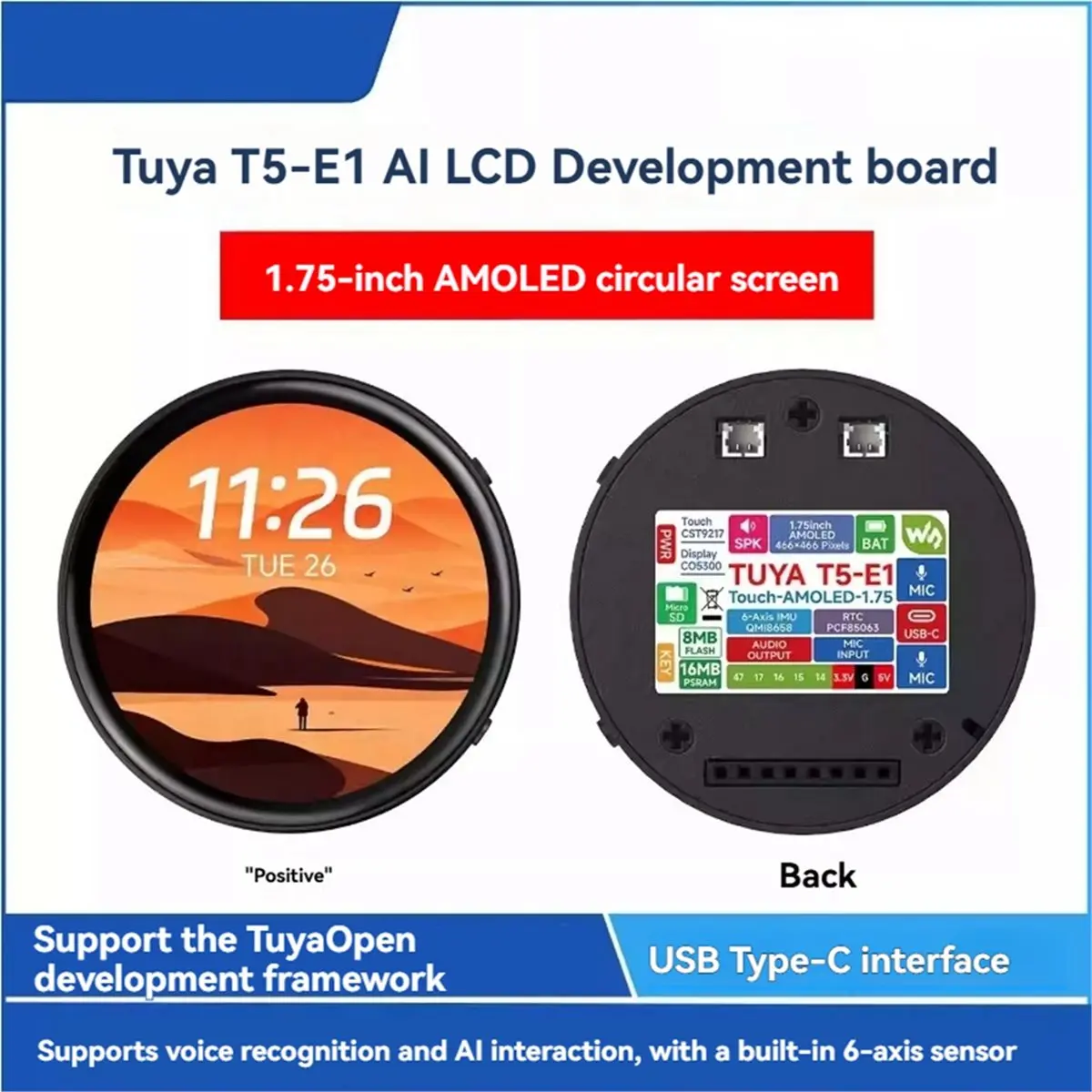 (ABGQ) T5-E1 1.75inch AMOLED Round Touch Display Development Board AI Voice Chat Robot Supports TuyaOpen Development