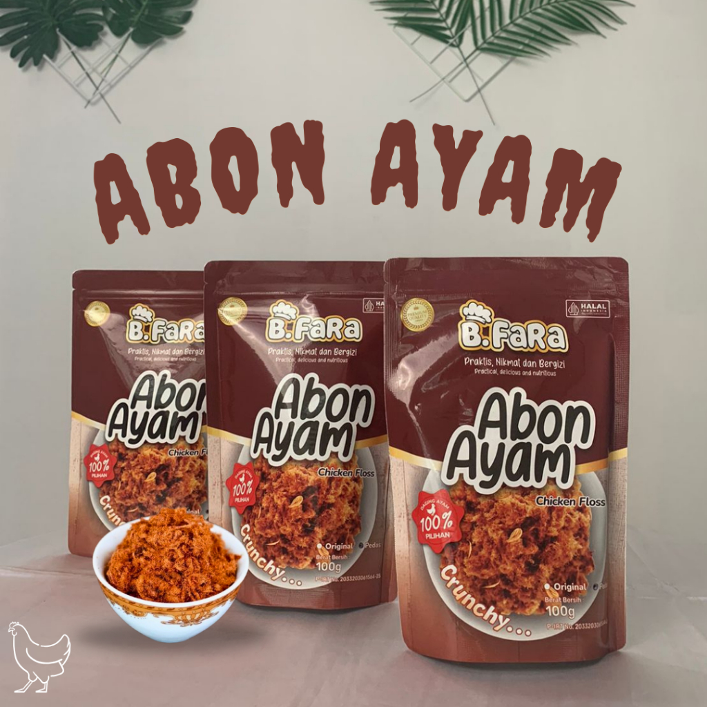 Abon Crunchy ASLI Indonesia, diolah dengan menggunakan kualitas daging ayam terbaik serta bahan-bahan yang alami . Dan aman dikonsumsi oleh siapapun karena B.Fara abon diproduksi tanpa menggunakan bahan pengawet dan tanpa MSG.