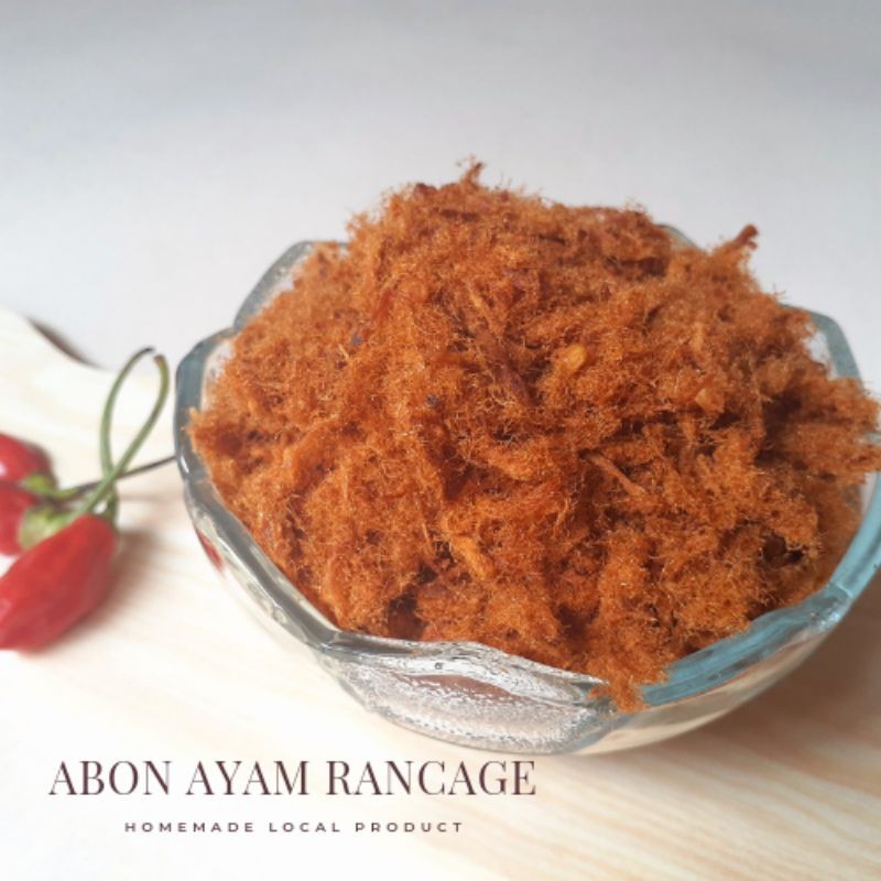 Abon ayam rancage ini terbuat dari 100% daging ayam asli dan diolah dengan rempah - rempah alami sehingga menjadikan cita rasa yang enak dan gurih juga tanpa bahan pengawet.