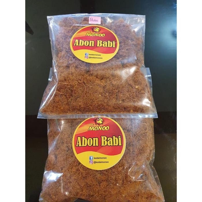 ABON BABI KEDAI MONOO TERBUAT DARI DAGING BABI PILIHAN DENGAN BUMBU KHAS BERKUALITAS ADA 2 VARIAN RASA: ORIGINAL (MANIS) DAN PEDAS BERAT 100 GR