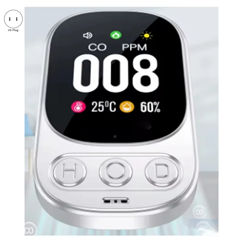 ABVO-Temperature Humidity CO Monitor Temperature Sensor Three-In-One Detector US Plug