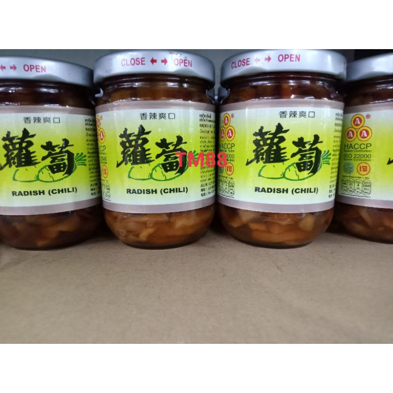 ACAR LOBAK CABAI/RADISH CHILI PRODUK AAA BRAND NETTO 180 GRAM.