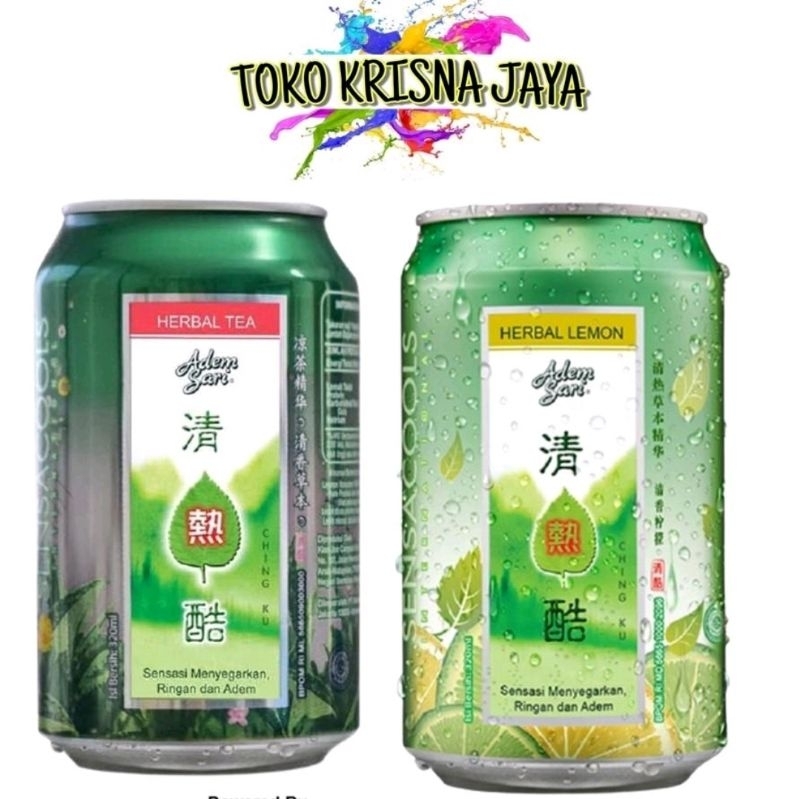 Adem Sari Ching Ku Kaleng Minuman Keseharan , adem sari ching ku minuman berperisa lemon dengan komposisi air berkarbonat, air, gula, jus lemon, perisa identik alami jeruk lemon, pengatur keasaman (asam sitrat, asam malat), ekstrak rumput gandum, pengawet kalium sorbat, ekstrak cincau, ekstrak krisantemum yang dibuat dengan 3 ekstrak herbal yang menyegarkan, ringan dan adem.