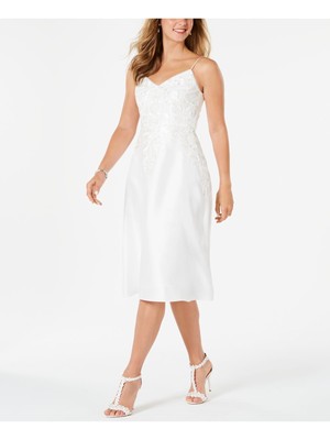 ADRIANNA PAPELL Женское белое вечернее платье миди на тонких бретельках + расклешенное торжественное платье, Белый