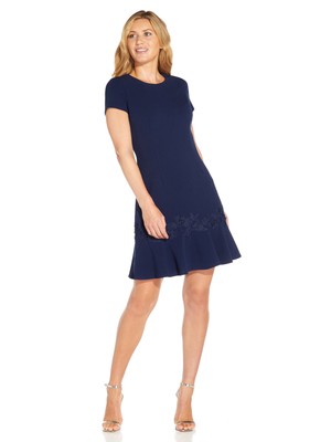 ADRIANNA PAPELL Женское темно-синее платье-футляр с оборками и короткими рукавами, Navy