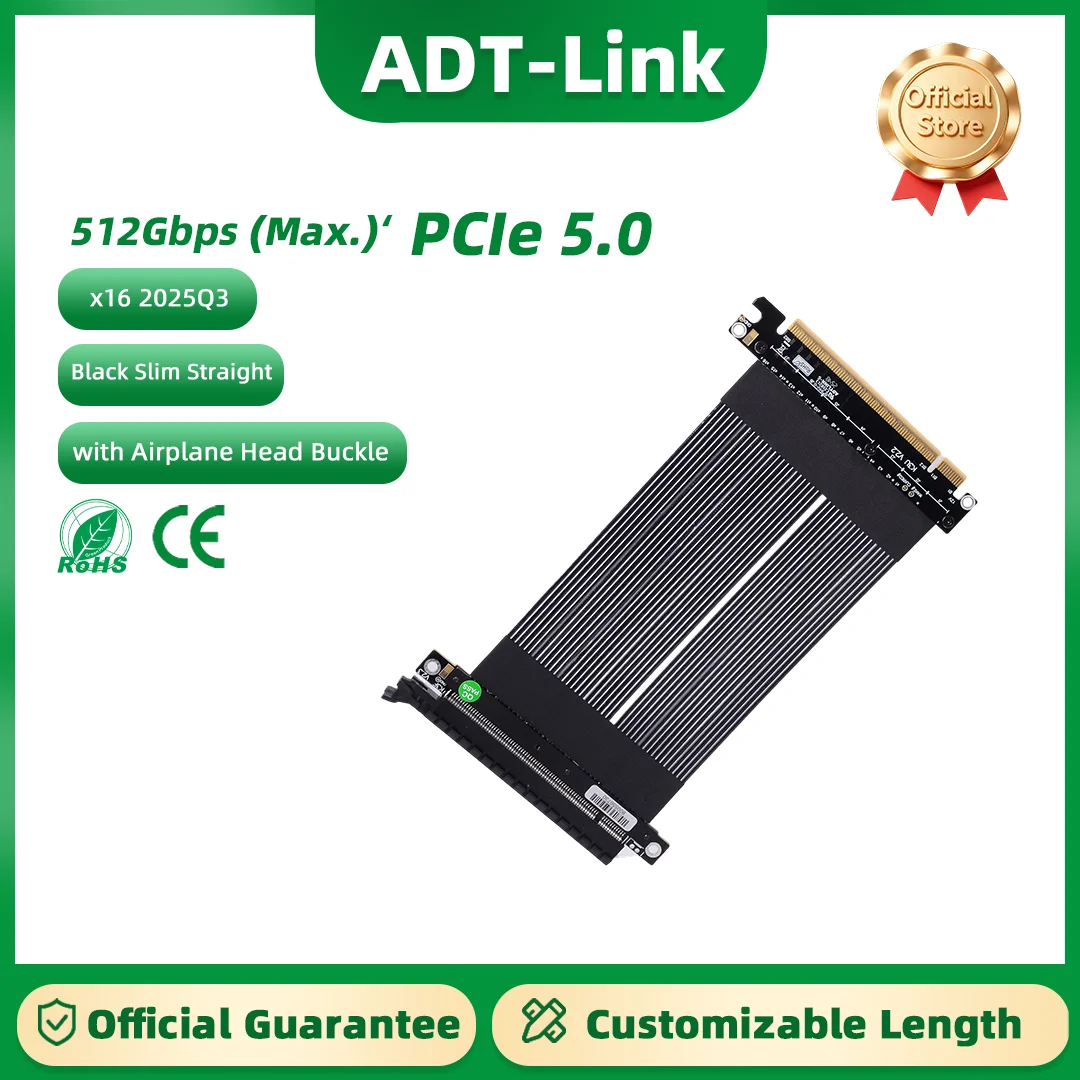 ADT-Link K33UF-FG PCIe 5.0 x16 Graphics Card Extension Cable Standard High-Speed Lossless Riser Cable with Airplane Head Buckle